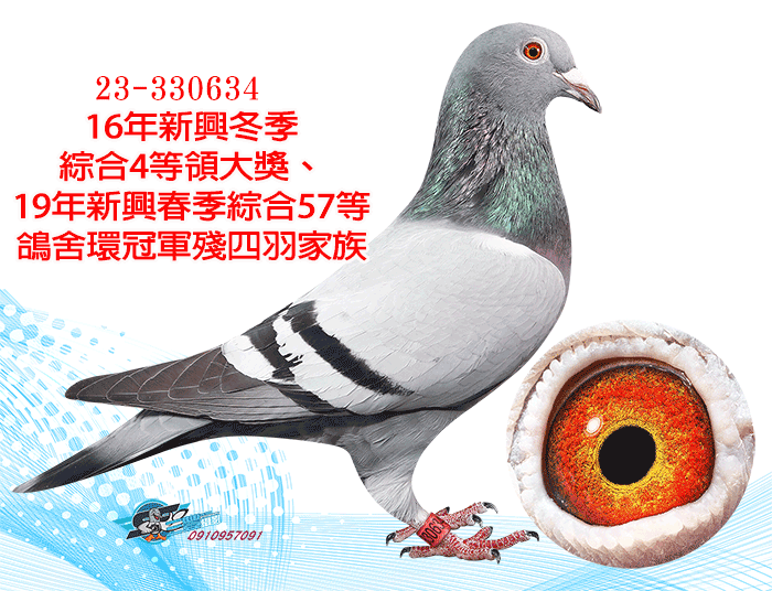 16年新興冬季綜合4等領大獎、19年新興春季綜合57等鴿舍環冠軍殘四羽家族