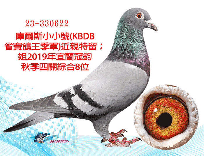 庫爾斯小小號(KBDB省賽鴿王季軍)近親特留;姐2019年宜蘭冠鈞秋季四關綜合8位
