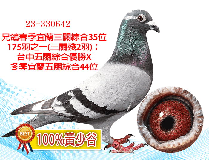 【100%黃少谷】兄鴿春季宜蘭三關綜合35位175羽之一(三關殘2羽);台中五關綜合優勝X冬季宜蘭五關綜合44位