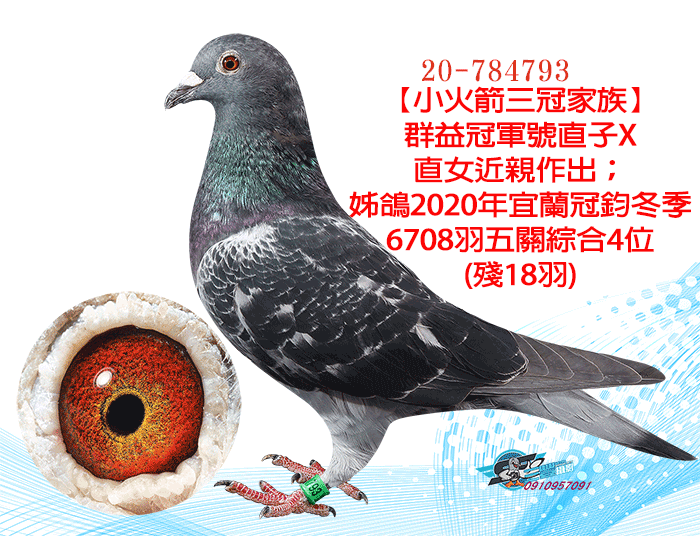 【小火箭三冠家族】群益冠軍號直子X直女近親作出;姊鴿2020年宜蘭冠鈞冬季6708羽五關綜合4位(殘18羽)