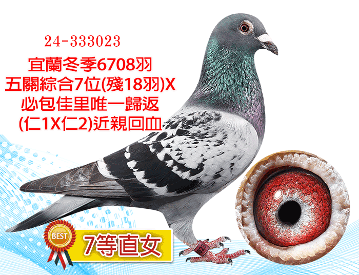 冬季宜蘭6708羽五關綜合7位(殘18羽)全弟X(詹姆士龐德x親愛的血系)