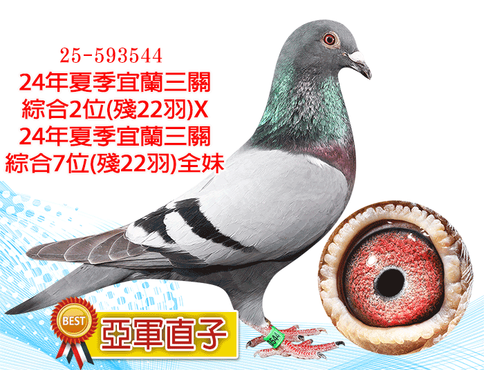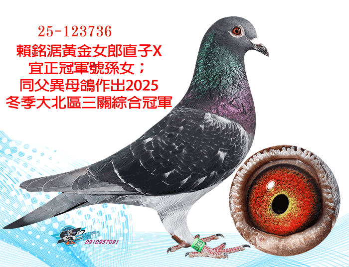 賴銘涺黃金女郎直子X宜正冠軍號孫女;同父異母鴿作出2025冬季大北區三關綜合冠軍