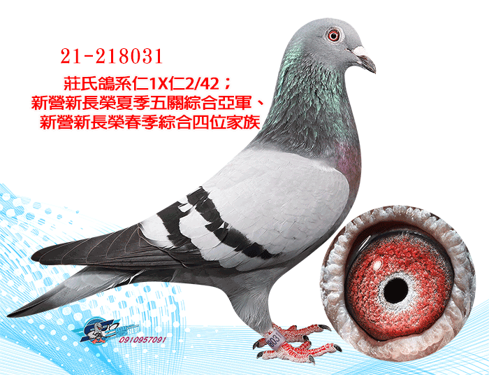 莊氏鴿系仁1X仁2/42;新營新長榮夏季五關綜合亞軍、新營新長榮春季綜合四位家族