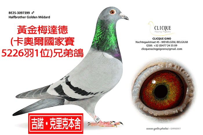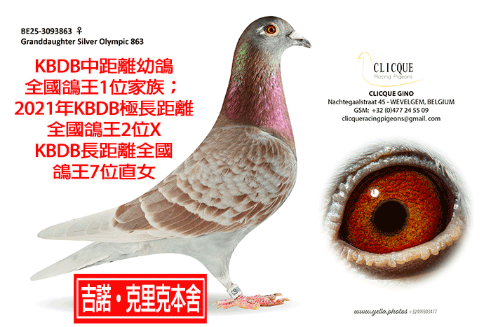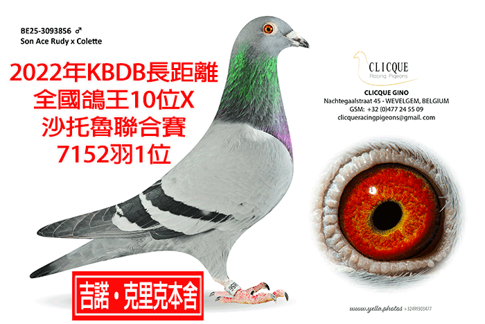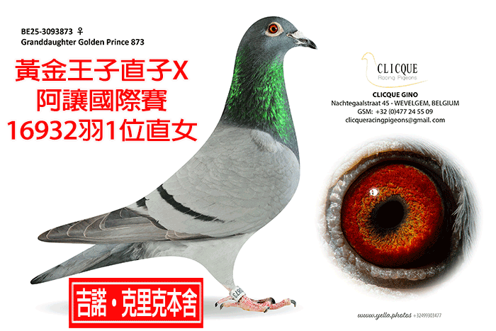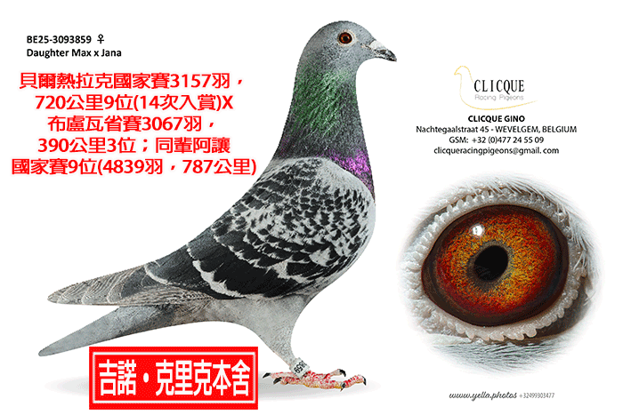 2026/04/17-04/23吉諾.克里克原舍Gino Clicque《鴿在歐洲,得標需支付每羽國際運費新台幣$10,500元,運輸時程較長(約2-4個月),請耐心等候!》