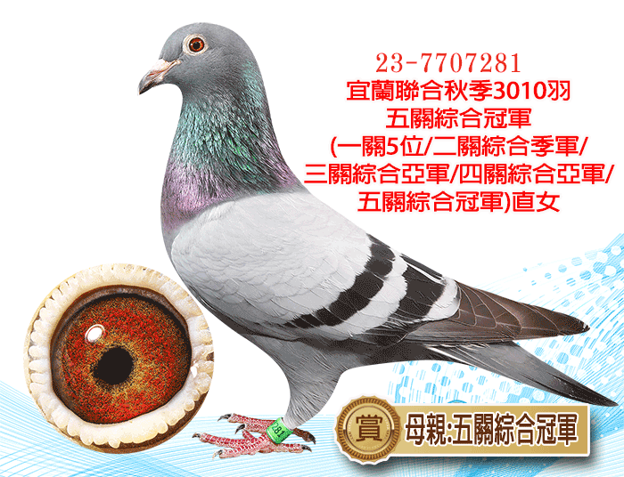 2025年宜蘭冬季10706羽四關綜合7位(殘24羽)父鴿姊 X上億金母-優女